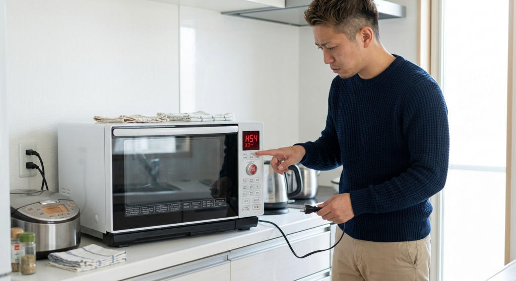 まとめると、H54エラーは主にインバーター基板という電子レンジの脳にあたる部品の故障を知らせるサインです。まずはコンセントを抜いて15分放置するリセットを試してみて、それでもダメなら、基本的には専門の修理が必要になります。修理代は1.5万〜2.5万円ほどが相場ですが、購入から8年以上経過している場合や保証がない場合は、修理よりも最新モデルへの買い替えを検討するほうが、長い目で見ればおトクで安心な選択肢と言えるでしょう。